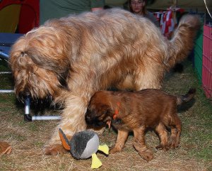 Was ein Wochenende. Hier war der Bär los. Meine Freundin Britta war mit Rene und ihren beiden Mädels Marie und Emma für ein paar Tage angereist. Samstags hatten die Babys insgesamt mehr als 20 Menschen zu Besuch gehabt. Und abends war dann auch noch Halbbruder Gismo da. Die Babys, Dinah und Colline nehmen das einfach alles völlig cool hin. Sie finden "action" toll. Hauptsache genug Hände zum streicheln. Und genug Ohren, die man schleckern kann. Tja, und die Babys sehen die Menschen irgendwie als Burg, die man erobern muss. Und Kinder sind besonders spannend. Die machen ganz andere Sachen mit den kleinen Wuzzis als die Erwachsenen. Die meisten jungen Besucher kennen sich ja seit Jahren mit Briards aus und gehen sehr souverän und selbstverständlich mit Dinahs Babys um. Aber seht selbst:
